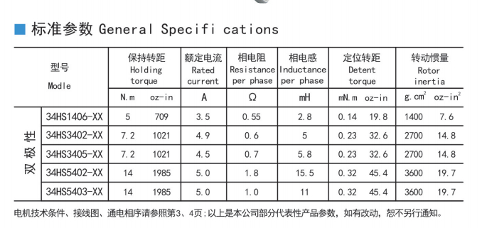 步進(jìn)電機(jī)34HS標(biāo)準(zhǔn)參數(shù)